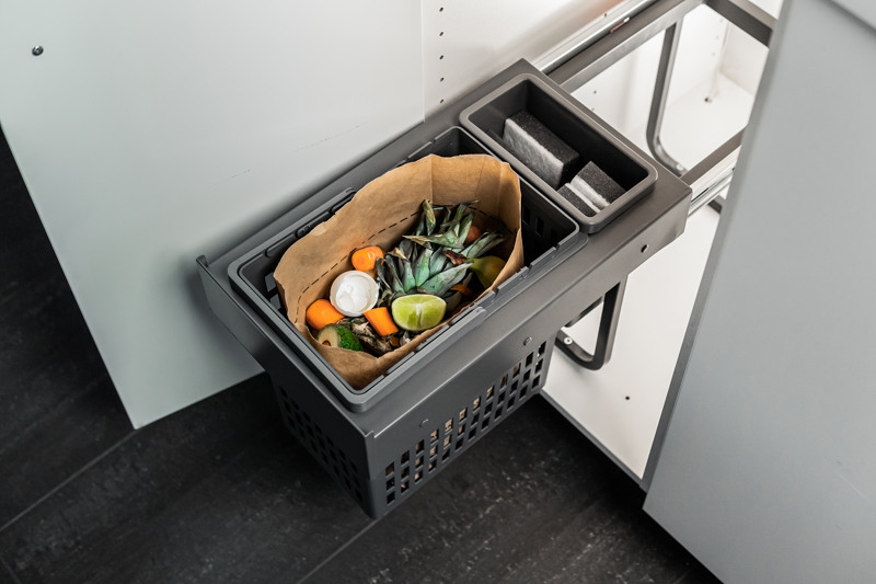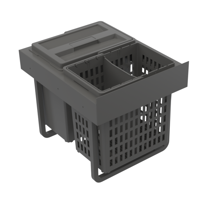 SELECT BASE 300 passar i skåp med gångjärnshängda dörrar från 300 mm i bredd. Den monteras enkelt på skåpets golv och kan placeras både i vänster- och högerhängda skåp. Produkten är fullt utdragbar, är mjukstängande och tål tung last. Den passar i diskbänksskåp. SELECT BASE bygger på samma ram som SELECT SIDE men har fäste för golvmontering.